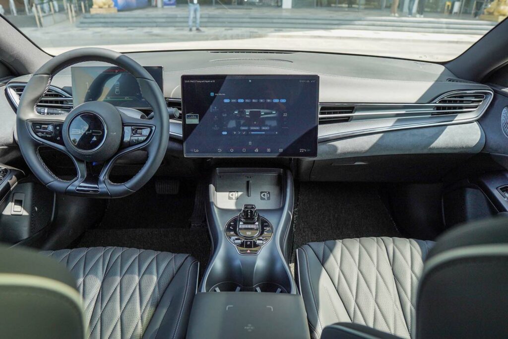 Khu vực trung tâm được trang bị màn hình cảm ứng với kích thước 15,6 inch, có thể xoay ngang hoặc dọc, giúp người lái tận hưởng trải nghiệm công nghệ đầy thú vị.