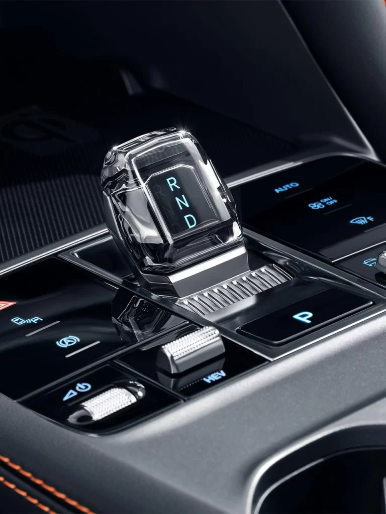 Thiết kế nội thất của BYD SEALION 6 lấy cảm hứng từ vẻ đẹp của đại dương, như được thấy trong cần số pha lê quyến rũ.