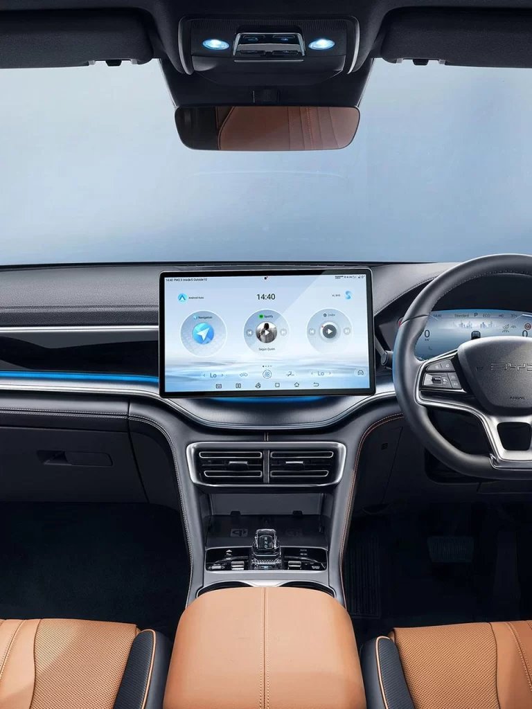 BYD SEALION 6 có màn hình cảm ứng xoay lớn 15,6 inch hoạt động như một trung tâm điều khiển kết nối và thông tin giải trí.