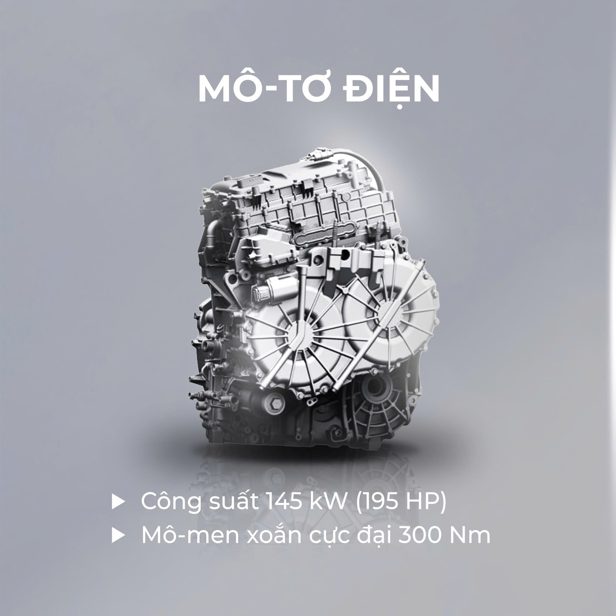 Hệ thống truyền động tích hợp cao kết hợp động cơ kép tốc độ cao, bộ điều khiển kép và công nghệ làm mát bằng dầu tiên tiến để tăng mật độ công suất và hiệu suất của động cơ.
